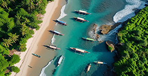 烏魯瓦圖情人崖 早餐后,前往游玩【南灣水上中心】,這里海闊天藍,在此悠然漫步戲水,?如果余興未足,您也可自費參加各種水上活動:飛魚,水上摩托車,香蕉船,降落傘,潛水等。乳膠產量在世界上排行第一的國家泰國,而印尼則是第二大產量的國家,在印尼最有名且深受各國旅客喜歡的【乳膠工廠】。隨后前往【咖啡工廠】免費品嘗聞名世界的巴厘島特產咖啡,印度尼西亞最有名且受各國旅客喜歡的是「黃金咖啡」,這種咖啡生長于海拔一千二百公尺,以金黃色色澤、香味濃郁、咖啡因較低而聞名,在咖啡工廠您將了解咖啡的制造過程從咖啡樹、咖啡豆、去殼、曬干、烘焙等一系列的處理制造過程,這里還會教大家咖啡正確的沖泡方式及冰咖啡、熱咖啡的不同做法,當場可品嘗,無限暢飲,值得您品嘗整理數日來的點點滴滴回憶。之后驅車前往【烏魯瓦圖懸崖】又被稱為“情人崖”,懸崖斷壁的大自然奇景、湛藍的海水,您將驚嘆于大自然的鬼斧神工。接著前往【金巴蘭海灘】,在這片充滿浪漫的沙灘上漫步,一定記得拍照留念哦。同時在這里享用BBQ晚餐,伴隨著燭光將浪漫進行到底。