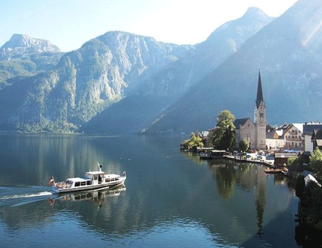 薩爾茨堡城堡上的好天氣是稀少的,難遇的。氣候那么無常,風云瞬間變幻;傾盆的暴雨,劈頭的冰雹,連旬不開的云霧,不合時令的飄雪……都帶有神秘莫測的味道,可又習以為常。真好,我們慶幸遇到了晴朗的日子,藍天麗日,碧湖峻峰,空氣中沒有一絲飄塵游垢,宛若仙境一般寧靜和凈潔。