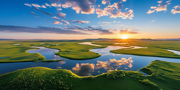 抵達后哈達接團,乘車(約1小時)赴【呼倫貝爾草原景區】(含門票),呼倫貝爾大草原是世界四大草原之一,無限的草原風光壯美而遼闊,讓您身心完全舒展,途經蜿蜒曲折的“天下第一曲水”——莫日格勒河畔(《尋龍訣》的熱映,使外景地呼倫貝爾大草原上的莫日格勒河名聲遠播),河道彎彎曲曲,有的地方不足百米的長度,卻有十幾道彎,因此以“曲”聞名,藍天、白云、曲水、青山、牛群、羊群,構成一幅絕美的圖畫……
