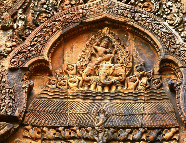 隨吳哥窟旅游團旅游,吳哥寺是一定會參觀的。寺周圍綠樹環繞,寺廟建筑呈金字塔形。南面佇立的一座女神像栩栩如生,仿佛在向游人招手致意。王臺是吳哥寺的主要建筑,其上3米高的回廊畫壁雕刻著巨大浮雕,上面記載著吳哥窟的歷史。