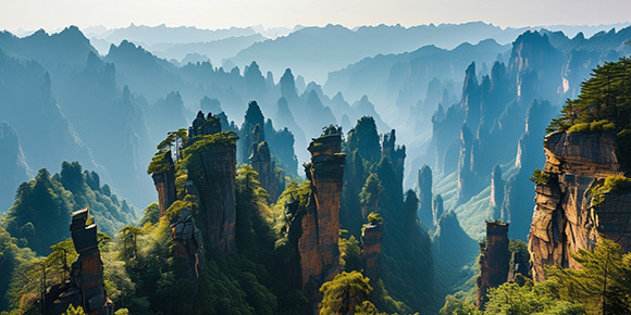 袁家界-天子山-金鞭溪-阿巴砦景區(qū) 早餐后 BUS 赴中國(guó)第一個(gè)國(guó)家森林公園——【張家界國(guó)家森林公園】 (首道大門(mén)票已 含,景區(qū)內(nèi)小交通百龍單程VIP 已含),盡情享受每立方厘米 10 萬(wàn)負(fù)氧離子的純凈空氣, 欣賞中國(guó)最美的峽谷——【金鞭溪大峽谷】穿行于絕壁奇峰之間,溪谷有繁茂的植被,溪水 四季清澈,被稱為“ 山水畫(huà)廊 ”、“人間仙境 ”。逃離城市喧鬧,收獲久違的感動(dòng),自此戀 上這山野間的寧?kù)o悠然。后乘百龍電梯上山,游覽【袁家界核心景區(qū)】《阿凡達(dá)》懸浮山原 型——哈利路亞山,探尋影視阿凡達(dá)中群山漂浮、星羅棋布的玄幻莫測(cè)世界;參觀云霧飄繞、 峰巒疊嶂、氣勢(shì)磅礴的迷魂臺(tái),及天下第一橋等空中絕景。后乘環(huán)保車前往【天子山風(fēng)景區(qū)】 “誰(shuí)人識(shí)得天子面,歸來(lái)不看天下山 ”,可見(jiàn)天子山風(fēng)光旖旎,景色秀美,景點(diǎn)眾多。