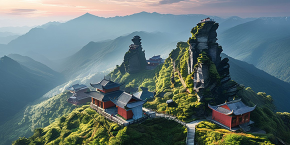 梵凈山 貴陽上午:乘車前往銅仁市梵凈山景區,車程約2.5H。游覽國家5A級景區,世界自然遺產、中國五大佛教名山的【梵凈山】(含梵凈山電瓶車48元/人,往返索道140元/人,保險10元/人)(游覽不少于4小時),十億年前大自然的鬼斧神工的創造力,造就了不可思議的奇景,令人嘆為觀止,是中國的天空之城。進景區后乘坐20分鐘環保車,達到纜車站,乘坐20分鐘左右纜車到站后步行到達山頂欣賞靈山奇石,最先到達梵凈山的標志景點—【蘑菇石】,上大下小,看似蘑菇,看似一觸即倒,實則巋然不動。之后可以先去【老金頂】一路尋找黔金絲猴和鴿子花的身影,之后返回【普渡廣場】,可以在這里休憩,拍照。之后可選擇登頂【紅云金頂】參悟現在,憧憬未來。金刀峽裂縫將金頂一分為二,兩邊各有一座廟,一座供奉釋迦佛,一座供奉彌勒佛,兩殿之間有一座天橋相連,有紅云瑞氣常繞四周。每當云霧繚繞時,紅云金頂在驚濤駭浪中若隱若現,無限風光在險峰中浮現,當爬上紅云金頂,一覽眾山小,看著遠處群山連綿,腳下云海涌動,無異于立足仙境。
