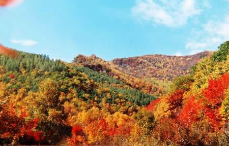10月25日—11月10日是到慕田峪長(zhǎng)城欣賞紅葉的最佳觀賞期。此時(shí),火炬樹(shù)紅得像火、紅得像云,襯著柞樹(shù)的金黃、松樹(shù)的翠綠,組成一幅五彩斑斕的山水畫(huà),宛如世外桃源一般。游人在此可領(lǐng)悟秋的深沉、秋的收獲、秋的自然美。坐在被紅葉染紅的小溪旁,酌一杯小酒,拈幾粒茴香豆,或與情侶相偎,囁囁而語(yǔ),或扶老攜幼相互嬉戲,那該是一種什么樣的景狀啊。徜徉在紅色叢林間,秋風(fēng)颯颯,紅波起伏,如同暢游在紅色海洋中,那將是怎樣一種心情啊,怎不讓人心醉!帶一枚紅葉歸去吧,制成標(biāo)本,當(dāng)作書(shū)簽,送親朋好友,或留作已用,每每翻動(dòng)紅葉,能不勾起溫馨的回憶?