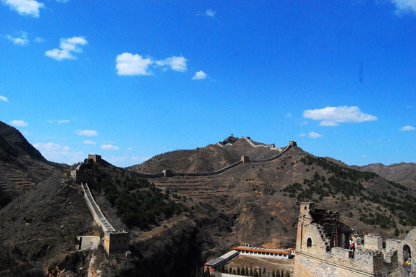 不知道是誰的猜測,當年修筑司馬臺長城,因為山勢過于險峻,筑城青磚只能由善于攀爬巖壁的山羊馱到山上,敵樓也因此修得十分細長。只是奇怪,如此費力修建這段長城,卻似乎看不出多大意義:薄薄的墻體根本無法長久站立防守的官兵,縱然誘使敵兵費盡辛苦翻過這窄墻,大約一看之下也會大驚失色,失足掉到障墻背后另一面山崖下粉身碎骨——天險與絕路,在此竟不給人退路,難免感慨修筑者的艱難和設計者的良苦用心。而站在障墻中間低頭俯瞰,山竟已這般高聳。生死懸于一線,卻不再顫抖不安。大約只有當恐懼被壓到極限,痛苦才也會在剎那間化為無法言喻的超脫……