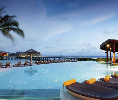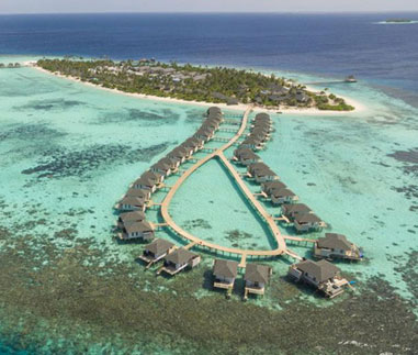 是目前馬代最奢華的酒店,由4個島嶼構成,房間面積240平以上的房間,每一棟別墅配有超大私人游泳池,各項設施頂級
