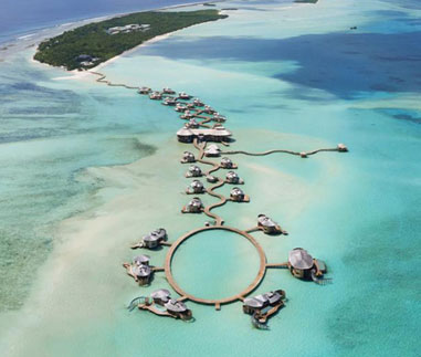 是馬代最受歡迎的島嶼之一,太陽酒店集團旗下島嶼,水飛上島俯瞰馬代美景。