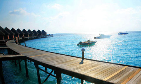 水上屋:16間舒適迷人的水上屋,那里有七間孟加拉式水上平房被青綠色的水包圍著,除此之外還包括所有的標(biāo)準(zhǔn)設(shè)施如電視和piped音樂(lè)。設(shè)施完備,風(fēng)景獨(dú)特。從自己的水上屋直接步入蔚藍(lán)色海洋的懷抱,再不會(huì)有更好的方式來(lái)享受這美好的事情了。房間內(nèi)有一大塊玻璃地板,從這里可以看到水下壯觀的珊瑚和海洋生物。到了晚上,把玻璃地板掀起之后看起來(lái)就更迷人了。每間水上屋有獨(dú)立的陽(yáng)臺(tái)用于曬日光浴,地面上還有玻璃鑲板.