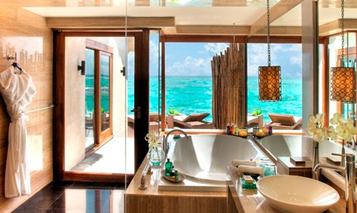 高級水上別墅建立在美麗的礁湖上,有一塊私人甲板您可直接躍入碧藍的海洋。別墅內有一間寬廣的浴室光亮的玻璃面對廣闊的印度洋使您身心徜徉。