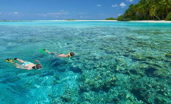 泰姬珊瑚島,英文全名(Vivanta Coral Reef Resort by Taj),別名“薇薇塔島度假村”。是印度泰姬酒店度假集團在馬爾代夫打造的第二座度假型島嶼,于2009年11月1日正式開始營業。島嶼位于北馬累環礁圈內,距離馬累約36公里,乘坐酒店的私人快艇大概需要60分鐘左右即可來到這座神秘的島嶼。泰姬珊瑚島面積不大,形狀類似一顆“心”型,安靜的矗立在印度洋之上。這里不僅擁有細柔的白色沙灘和浩瀚無邊的海景景致,還有茂密的椰樹林與碧空萬里的藍天,再加上四周五彩斑斕的珊瑚礁群以及各種可愛的海洋生物,最終形成了一副心曠神怡的“人間天堂”。不管是去探索神秘的海底世界,或是來這里逃避城市里的喧嘩,亦或者與伴侶蜜月旅行,泰姬珊瑚島毫無疑問是不二的選擇。