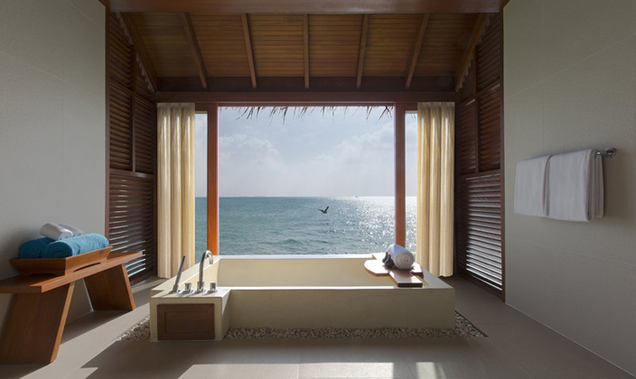 在太陽第一抹光線照亮印度洋地平線時(shí)愜意醒來,慵懶的躺在床上,透過落地窗欣賞美景,或是在配備躺椅和用餐區(qū)的私人日光露臺(tái)上欣賞。別墅環(huán)擁于自然美景之間,極盡豪華舒適。別墅海藍(lán)的主色調(diào)映襯著優(yōu)美海景,手工木雕裝飾彰顯熱帶風(fēng)情。
