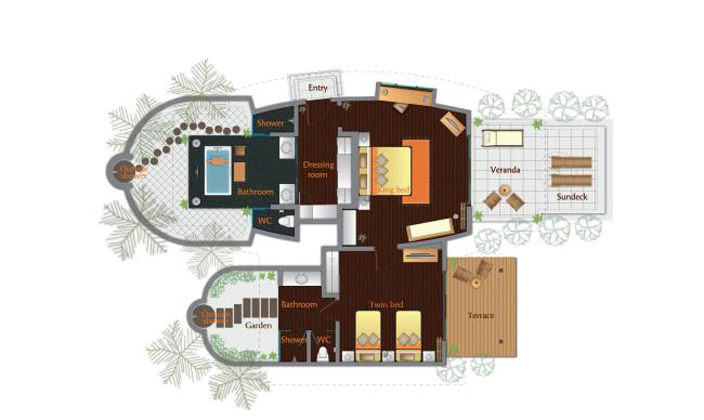 在優(yōu)美的半獨(dú)立別墅內(nèi)與家人或朋友共度一段人間天堂的美好時(shí)光。兩間單獨(dú)的別墅臥室,擁有寬敞的露天浴室,通過日光甲板連接室外。盡享私人跳水池、驚艷日落美景和直通海灘的便利位置。
