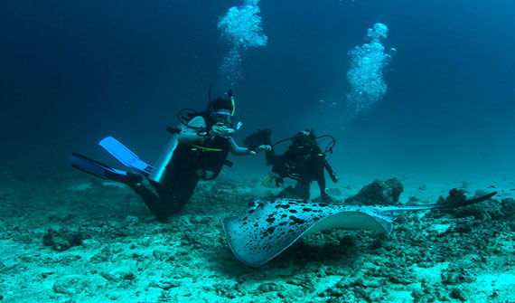 馬爾代夫是各種野生動(dòng)植物棲息的理想之地,一直以來(lái)深深地吸引著無(wú)數(shù)水肺潛水與潛泳愛(ài)好者。到水下一游,即可領(lǐng)略熱帶魚類和珊瑚花園的絢麗色彩。只需從度假村乘船來(lái)到不遠(yuǎn)的受保護(hù)潛水區(qū),就有可能近距離接觸這些奇妙生物。無(wú)論新手還是老手,都會(huì)在安納塔拉潛水中心感到家一般的自在。您可以報(bào)名參加全球認(rèn)可的國(guó)際專業(yè)潛水教練協(xié)會(huì)(PADI)證書課程,盡情探索海洋這一全新世界。如果您只想花一個(gè)下午觀賞野生動(dòng)植物,可以報(bào)名參加呼吸器潛水初級(jí)班。對(duì)于經(jīng)驗(yàn)更豐富的潛水者,安納塔拉可以送您前往附近許多岸礁潛水。和潛水大師進(jìn)行交流,定制完美的潛水之旅。