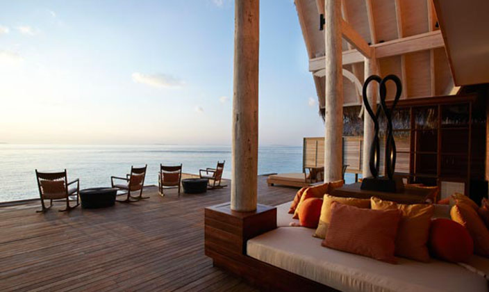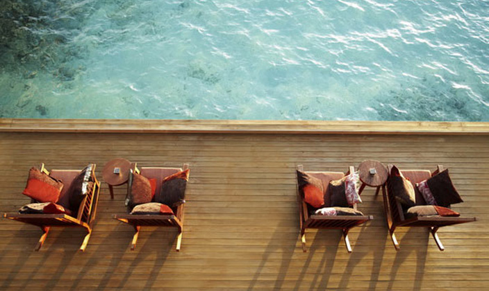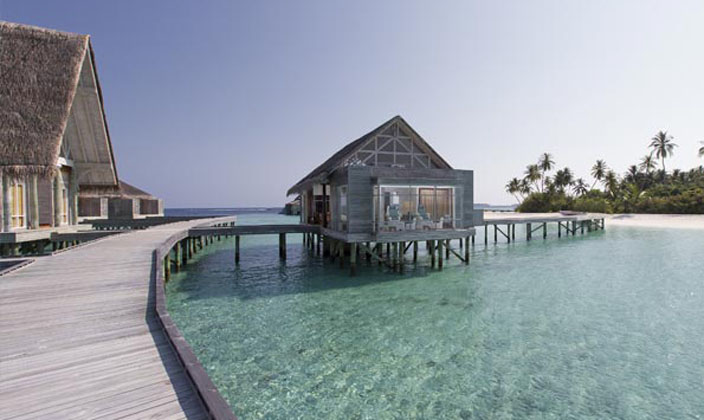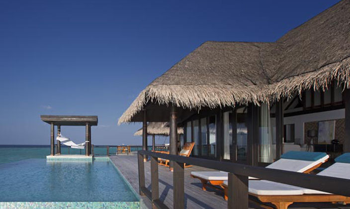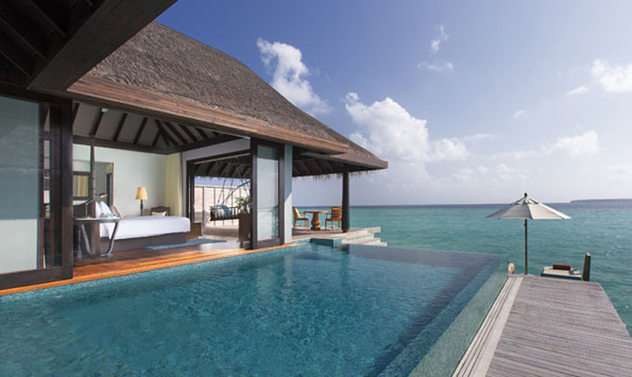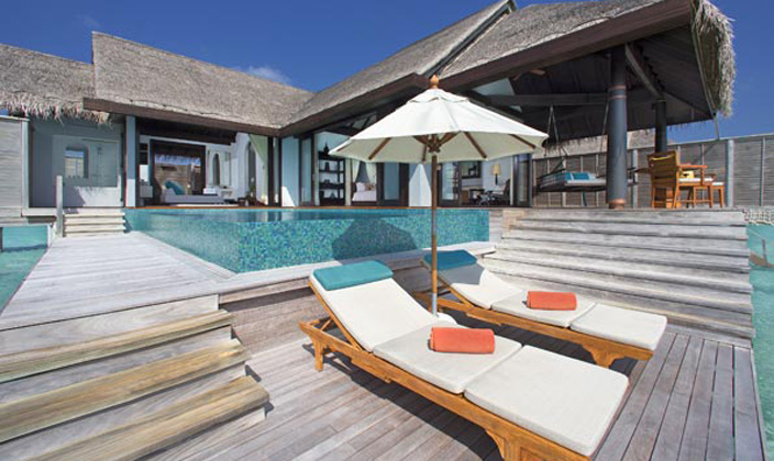 水上別墅能帶您他體驗(yàn)水生活的魅力,用條紋木材搭成而建在水上,并配有挑高的天花板和硬木地板的水上泳池別墅讓您感覺(jué)仿佛置身于大海之中。從你的私人游泳池欣賞令人眼花繚亂不斷變化的天空和馬爾代夫夕陽(yáng)戲劇。浴室設(shè)有凹陷的玻璃底浴缸吸收下面波光粼粼的海景,甲板還有一個(gè)超大的的無(wú)邊泳池。