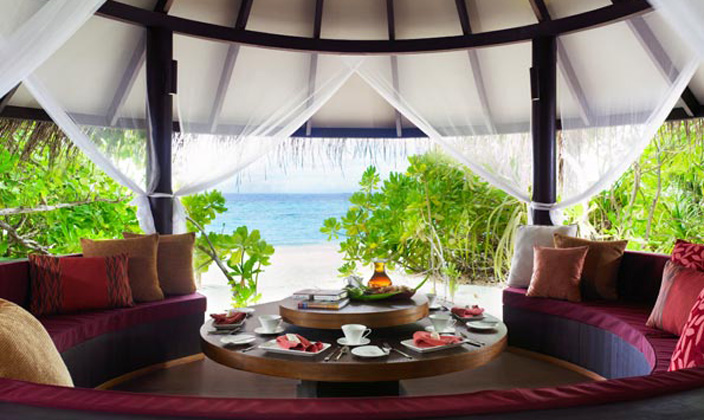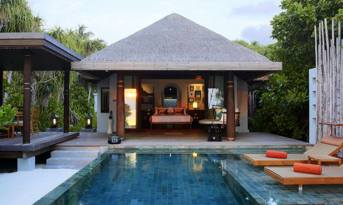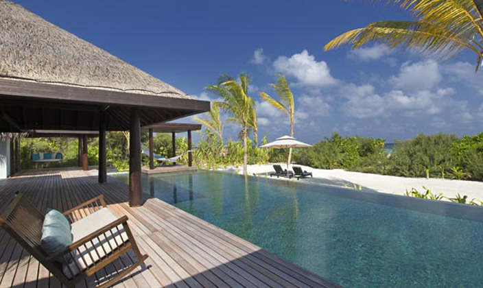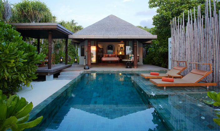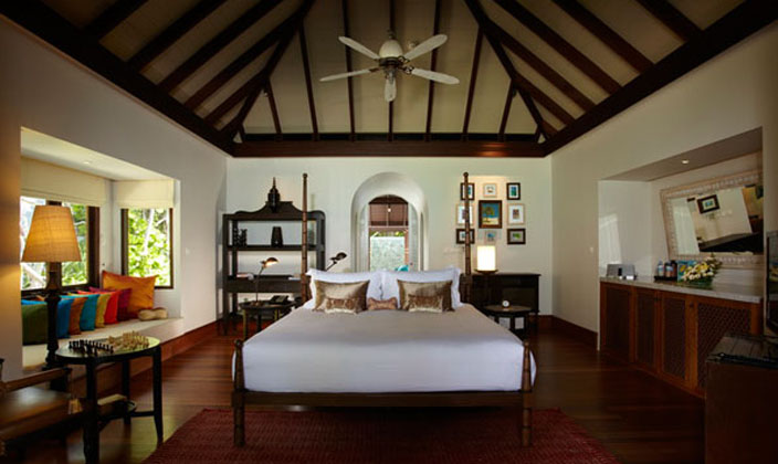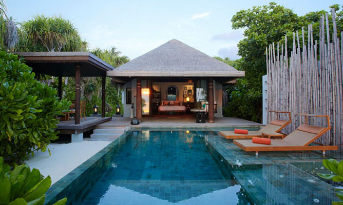 兩個(gè)主臥室別墅與中央別墅分隔而立,都擁有半露天浴室,沉入式浴缸周圍環(huán)繞著水塘、瀑布和戶外雨林式花灑。 第二棟宅邸擁有第三個(gè)主臥室,配有私家泳池和用餐亭、同樣寬敞的浴室和一個(gè)私家入口。每棟宅邸的客人共享大片的熱帶花園,以及按摩亭和設(shè)有水煙休息區(qū)的海灘小屋,更有私人管家24小時(shí)貼心服務(wù)。