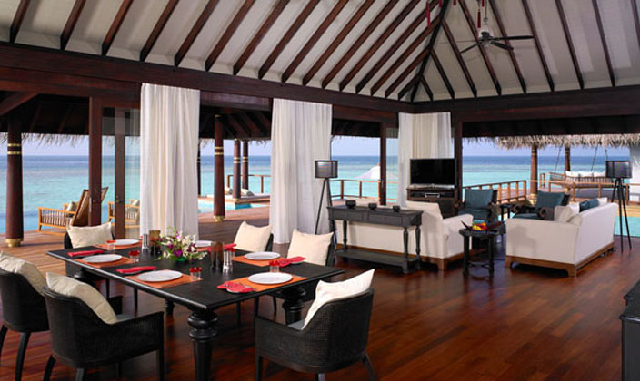 兩臥室水上泳池住宅以寧?kù)o的藍(lán)色和綠色為基調(diào),采用拋光木質(zhì)室內(nèi)裝潢,擁有戶外沙發(fā)床、寬敞明亮的起居室,是期望入住馬爾代夫豪華水上別墅的客人的理想選擇。 傍晚時(shí)分,在水上用餐亭享用私人日落晚餐——腳下黑影一閃,姿態(tài)優(yōu)雅的毯魟?dòng)芜^(guò)地板的海景玻璃下面。 我們的每棟馬爾代夫水上小屋都專門配備私人管家,一天24小時(shí)隨時(shí)待命,提供貼心服務(wù),實(shí)現(xiàn)您的任何。