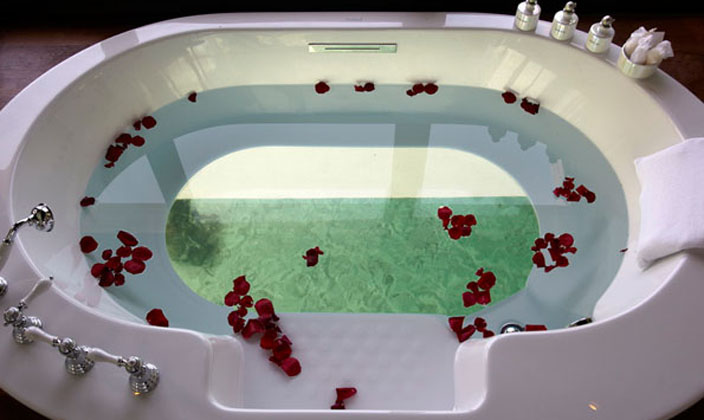 ★水屋把搖籃椅,網(wǎng)床,泳池,玻璃地板這幾個(gè)女士大愛(ài)的元素集全了,還多了一個(gè)讓人眼前一亮的玻璃底浴缸,如果這還不夠,一個(gè)水下餐廳也許可以打動(dòng)你;