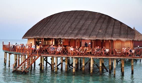 安嘎嘎島位于南阿里環(huán)礁(South Ari Atoll)的中心地帶,周邊環(huán)繞著大片美麗的珊瑚礁,分布著50多個植被區(qū)域。安嘎嘎島屬于小島,只需15-20分鐘就可以環(huán)島一周。剛踏上島就可以看到一家酒吧和一家餐廳,優(yōu)雅的茅草屋形狀好似一艘向前駛的船,酒吧屋檐下的白沙上有舒適的椅子,它們是島上最顯眼的特色標(biāo)志物。安嘎嘎島目前只有兩座度假酒店,并且它們一直維系著最自然淳樸的環(huán)境風(fēng)格。 寬敞的沙堤酒吧和餐館也別具風(fēng)味,都建成別致的魚形,每餐都是自助式,提供各種美昧的亞洲菜和歐洲菜,還經(jīng)常有海味燒烤。房間提供的葡萄酒不貴,但如果你想放縱一下自己,其實全包更劃算,每人58美金每天。單獨一瓶紅酒可能就超過這個價格了。 安嘎嘎島的沙灘非常細(xì)膩,步行環(huán)島大約15-20分鐘,島上有沙屋、水屋兩種房型,一個自助式餐廳,碼頭附近浮潛條件極佳浮潛環(huán)境一流,適合預(yù)算有限,對酒店硬件,不做過多要求的朋友。
