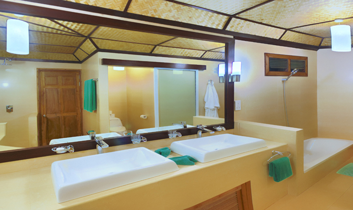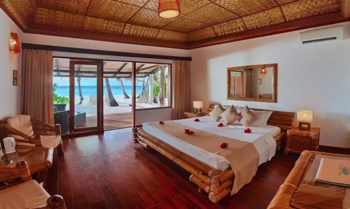 每間房都均勻的分布在島上,且每間房的周圍有最完美的沙灘。半露天式的衛(wèi)生間,讓你更接近大自然,全天都有冷熱水供應(yīng)。每一個沙灘屋外面都有帶床的秋千,新建的沙灘屋還是挑高的。
