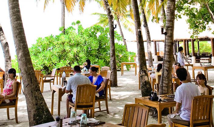 美食特色:早餐、便餐等。餐廳介紹:餐廳屋頂由茅草(當地人稱之為 alang-alang)搭建而成,掩映于白色沙灘的熱帶樹木中,鄉村木制桌椅打造出輕松的格調,在遠離喧囂的寧靜小島上,新鮮配制的各式早點和豪華豐盛的晚餐套餐,供您慢慢享用。