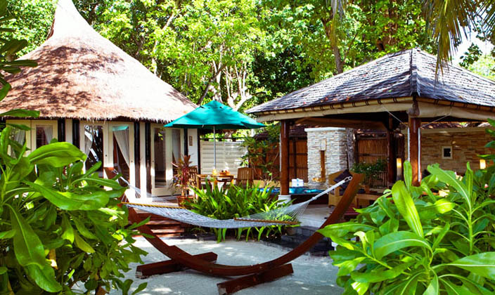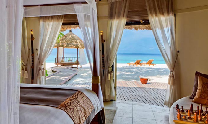 瓦賓法魯島,英文全名(Banyan Tree Vabbinfaru)。瓦賓法魯島是鑲嵌于茫茫印度洋里的一顆渾圓的珍珠,這里仿佛與世隔絕般,充滿了濃郁的自然氣息。瓦賓法魯島坐落于北馬累環礁,距離馬累僅有18公里,從馬累機場碼頭只需要乘坐25分鐘左右的快艇,即可登上這座美麗的島嶼。身處島上,身旁是潔白的細沙、清澈見底的海水、湛藍的天空以及蒼翠的椰林,讓人能夠完全跟大自然接觸。幾米以外地方的周邊珊瑚礁圍繞著整座島嶼。最真實、自然的瓦賓法魯島亦因此帶給了每位來這里的旅客無與倫比的浪漫和享受。島上無馬路,無高樓,就連現代人每天不可缺少的電視、電話與報紙通通沒有。在瓦賓法魯島上,時間仿佛靜止。盡管陽光很燦爛,不過卻不燥熱;海風很輕柔,不過卻有自己的力道。旅客走在瓦賓法魯島的海灘上,不約而同的很小心,好像怕打碎什么,害怕破壞這里寧靜的氛圍。