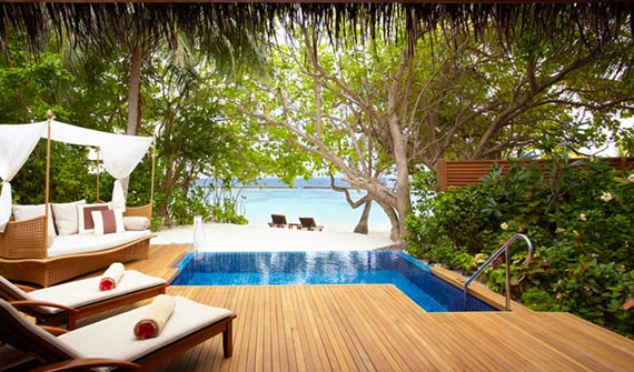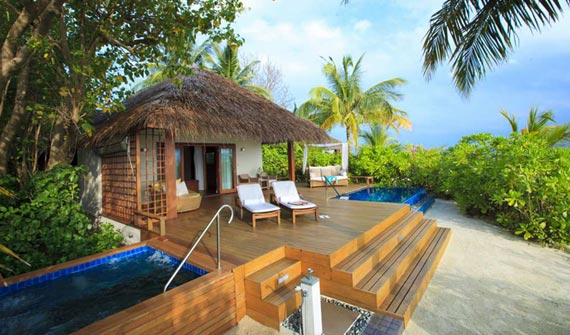 水上泳池別墅位于浮橋水末端,上屋建造在礁湖之上,海洋景致的壯闊一覽無(wú)遺。水上屋的建材完全取用原木、和椰子茅草屋頂搭建,寬敞的陽(yáng)臺(tái)甲板,有絕對(duì)的隱私,可傭懶的躺著,讓時(shí)光靜止。您可以從甲板的木梯直接進(jìn)入海水中,享受清涼的海浴。