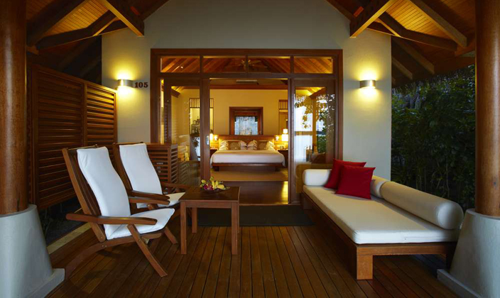 海景花園別墅是一座獨(dú)立的平房用茅草建造室內(nèi)外均種植茂盛的綠色植物每座別墅都很隱密,私人的戶外花園浴室充滿熱帶風(fēng)情。
