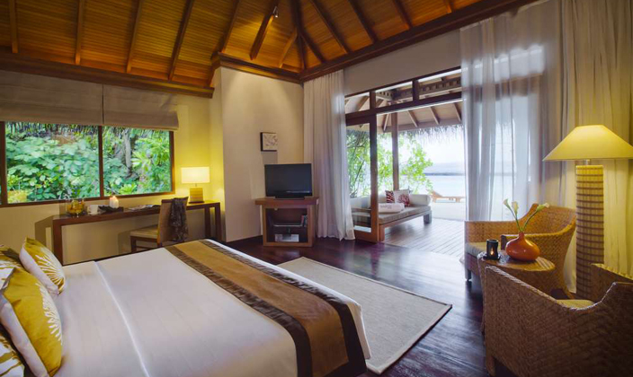 水上別墅建造在礁湖之上,海洋的壯闊一覽無(wú)遺。水上屋的建材完全取用原木和椰子茅草屋頂搭建,寬敞的陽(yáng)臺(tái)甲板,有絕對(duì)的隱私,可慵懶地躺著,讓時(shí)光靜止。您可以從甲板的木梯直接進(jìn)入海水中,享受清涼的海水。