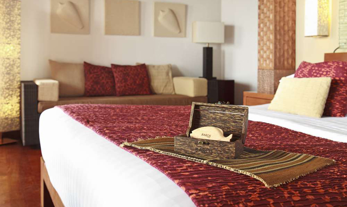 巴洛斯別墅室內(nèi)及室外均擁有寬敞的舒適空間。別墅就建造在沙灘上,可觀賞海灘的美景,私人的日光甲板,有寬廣的大陽(yáng)臺(tái),躺在沙發(fā)床上享有獨(dú)特的島上寧?kù)o。柚木地板,挑高的天花板和一張浪漫的床,屋里的空間設(shè)計(jì)優(yōu)美和浪漫。