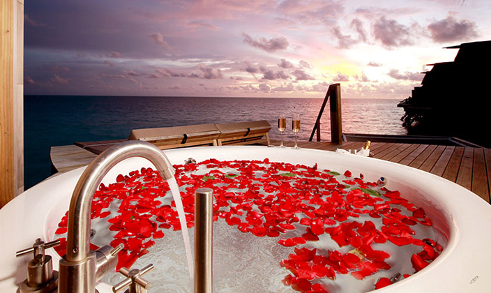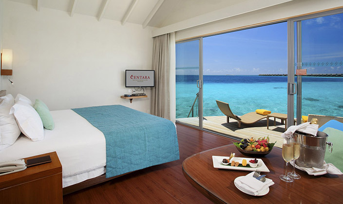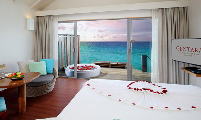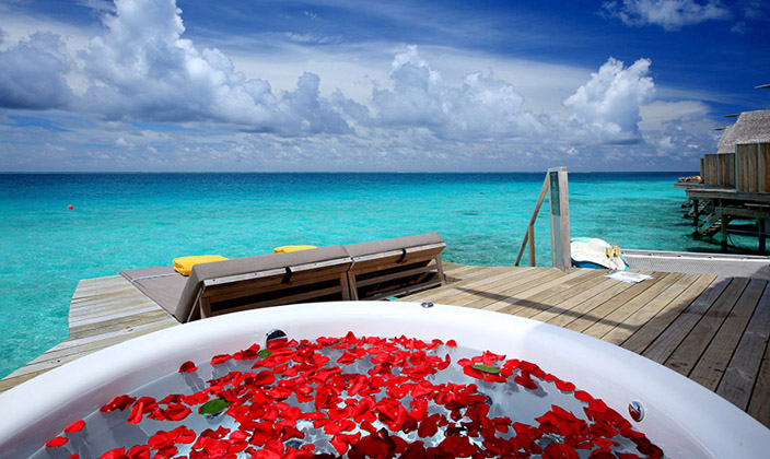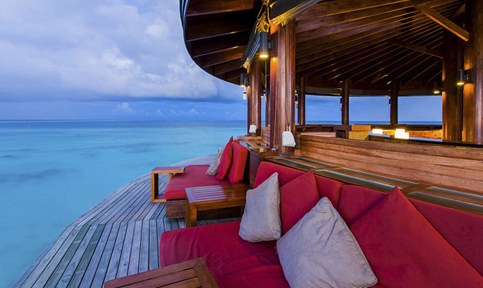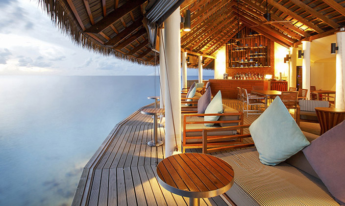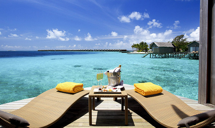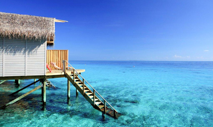 每個(gè)內(nèi)設(shè)豪華水上別墅設(shè)置高于清澈透明的海水醒來看見印度洋的美景,別墅提供寬敞的居住空間和一套帶家具的陽臺(tái),可以從階梯直接走到海里。
