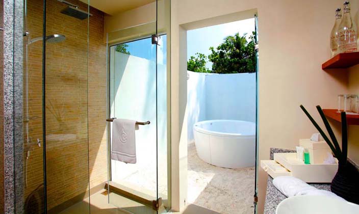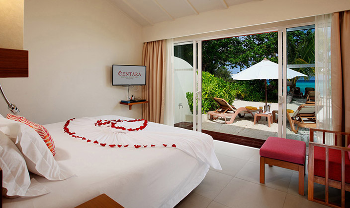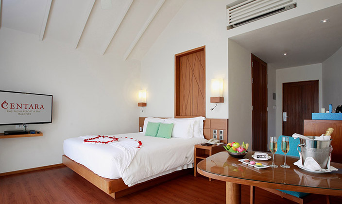 建立在水上,能欣賞到馬爾代夫壯觀日落美景,有直接下海的樓梯。每棟別墅都擁有一張?zhí)卮筇?hào)床或兩張單人床,以及帶淋浴的浴室。