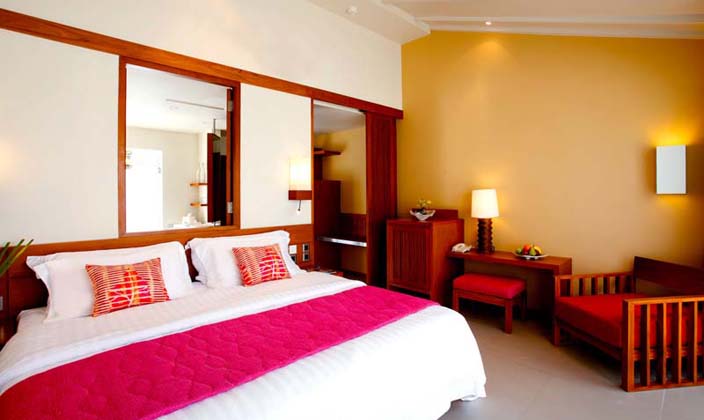 田園詩般的豪華海濱沙灘離瀉湖僅幾步之遙,別墅包括一個(gè)總生活空間包括室外花園與按摩浴缸。加上豪華大床非常適合情侶居住。