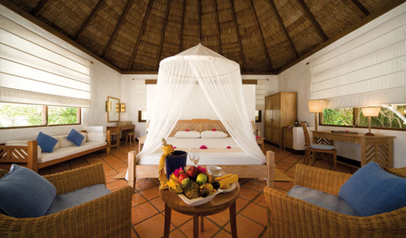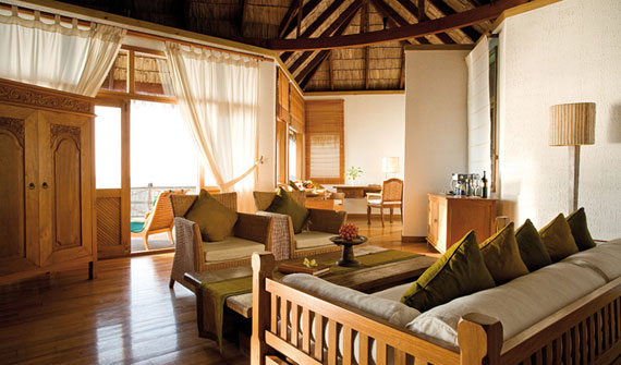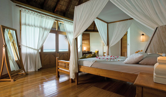 臥室配備了四柱大床,起居室擁有精心設計的家具和裝飾,奢華的海景浴室還特別提供了SPA浴缸和室內/室外雙淋浴。陽光甲板非常巨大,旁邊的私人游泳池與印度洋連為一體無人打擾,是絕對的私密和奢華。男管家24小時服務,將滿足你的一切要求。