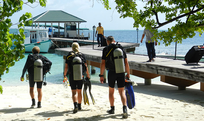 茵布杜鄉村度假村里有專業的潛水中心和周圍知名的潛水點(島嶼周圍擁有90個深潛地點),因此在潛水環境方面茵布杜鄉村度假村具有很大的優勢,是潛水者的理想之地。島上的潛水中心設施完善,潛水課程也特別豐富。另外度假村每天會定時組織旅客去30多個潛水地點感受奇妙的水底世界。若您沒有帶專業的潛水裝備,可以去島上的潛水中心租借,這里也很適合想第一次下水體驗深潛的游客,因此潛水這項運動在茵布杜島度假酒店相當熱門。