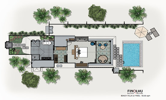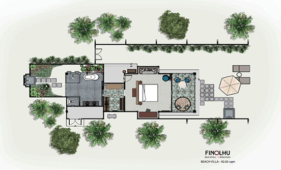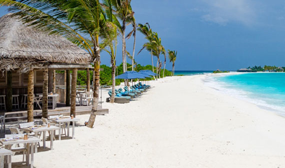 奢華的熱帶園林,特色的私人海灘,綠松石finolhu瀉湖,一個寬敞的室外用餐露臺和日光躺椅和;海灘別墅還配有40英寸的平板電視,一個私人的葡萄酒及迷你酒吧,詳細和獨特的家具設計,配有浴缸和室內和室外淋浴的獨立浴室。