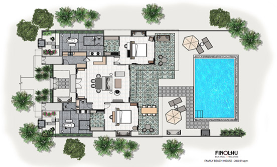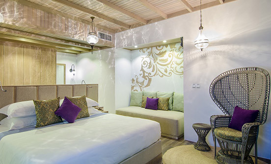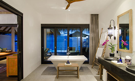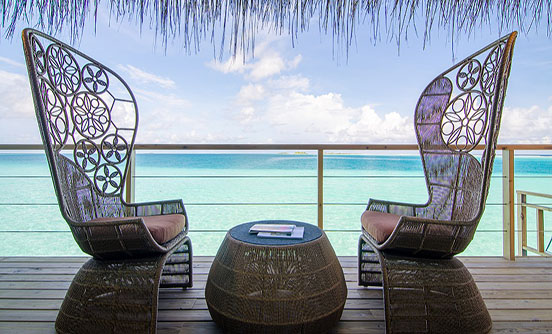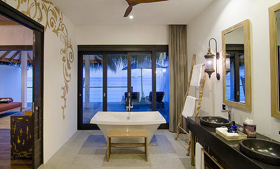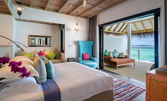 180sqm水上別墅的靈感來自法國里維埃拉的鮮艷色彩,可直接進入海洋,有個6m長的淡水游泳池以及設計獨特的家具和大型豪華的搖椅和一個私人陽臺室外的沙發床。 享受40英寸平板電視的私人葡萄酒及迷你酒吧、大型戶外陽臺配有躺椅和戶外淋浴,獨立衛生間的海景浴缸和室內淋浴而忽略了驚人的finolhu瀉湖和1.8公里長的沙灘。