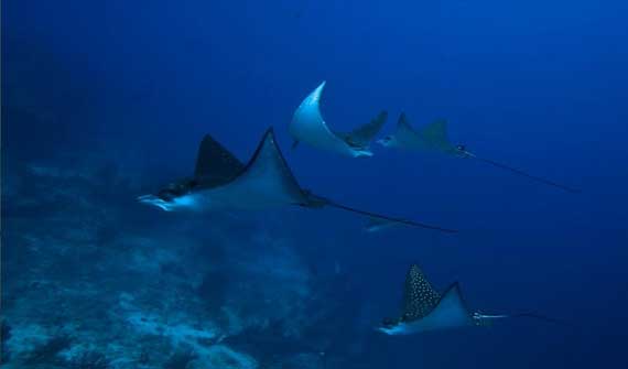 6.歡樂島每天都有魔鬼魚喂食表演,同時還可以下海和魔鬼魚同游,與大型海洋生物零距離接觸。