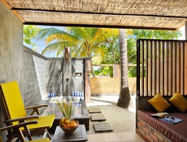 歡樂島豪華沙灘套房坐落在白金沙灘邊緣,門外即是寬廣的白金沙灘。獨立的沙屋別院,均配備私家泳池,整體環(huán)境盡顯后現(xiàn)代loft風格。崇尚自然的棕櫚葉屋頂,潔白的異域紗幔,柔軟的實木大床,單是這些,就能感受到撲面而來的熱帶風情。