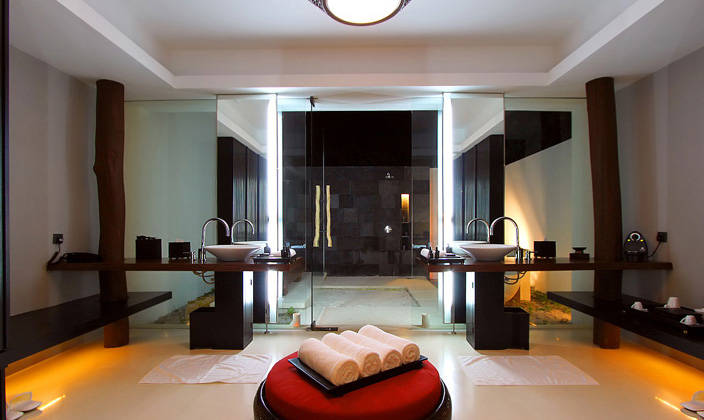 柏悅別墅均坐落于島嶼郁郁蔥蔥植被中,每間別墅均提供私人海灘使用、落地窗、帶有大型水磨石浴缸和淋浴系統(tǒng)的室外浴室和淋浴區(qū)域。