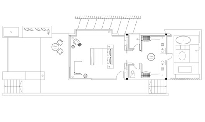 酒店的50間別墅均采用木材和石材裝飾,客房面積均達(dá)100平方米以上。客人可盡情享受雙柱式特大床、私人露臺以及其他室外豪華設(shè)施帶來的舒適體驗(yàn)。