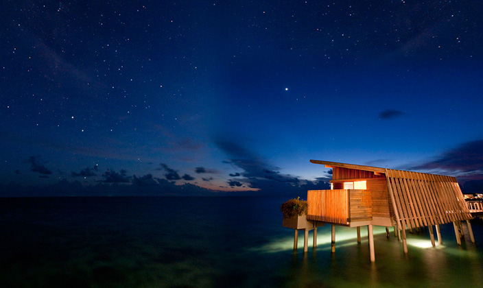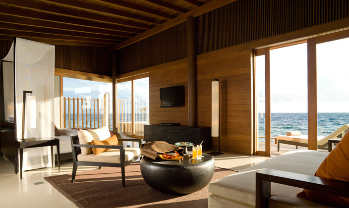 日落水上別墅可以180度的視角俯瞰印度洋,感受無與倫比的全景日落海景,房間由機(jī)天然木材和石頭組成,房內(nèi)擁有落地窗、特大號床、私人甲板,能夠躺在私人甲板上看的星星充分放松自己。