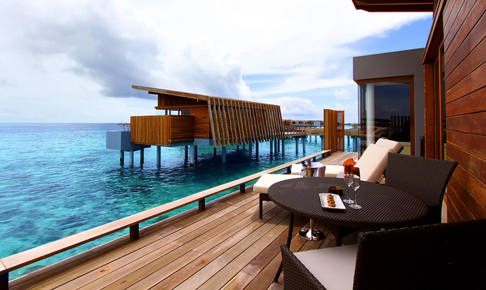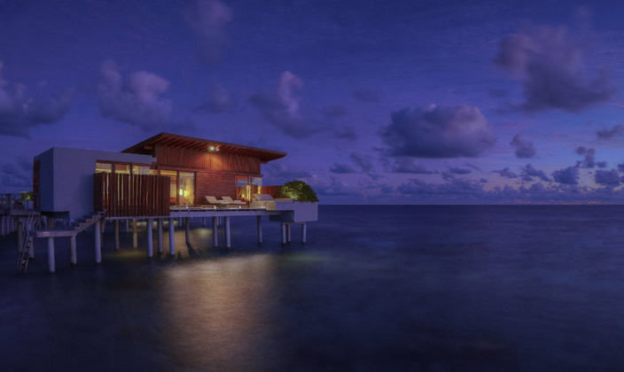 坐落于海洋上的柏悅水上別墅可提供180度的不間斷地平線景觀和令人屏息的的馬爾代夫夕陽景觀,并且每位客人均可獨(dú)自使用下面充滿珊瑚的水域。