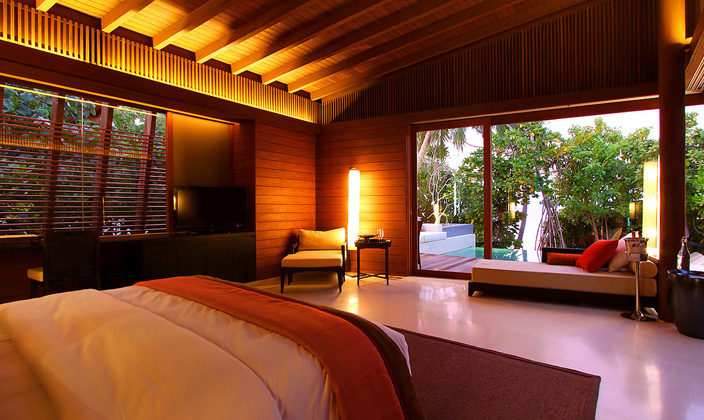 柏悅泳池別墅坐落于島嶼郁郁蔥蔥植被中、設(shè)有私人瀑布池的20間泳池別墅,每間別墅均提供私人海灘使用、落地窗、帶有大型水磨石浴缸和淋浴系統(tǒng)的室外浴室和淋浴區(qū)域。