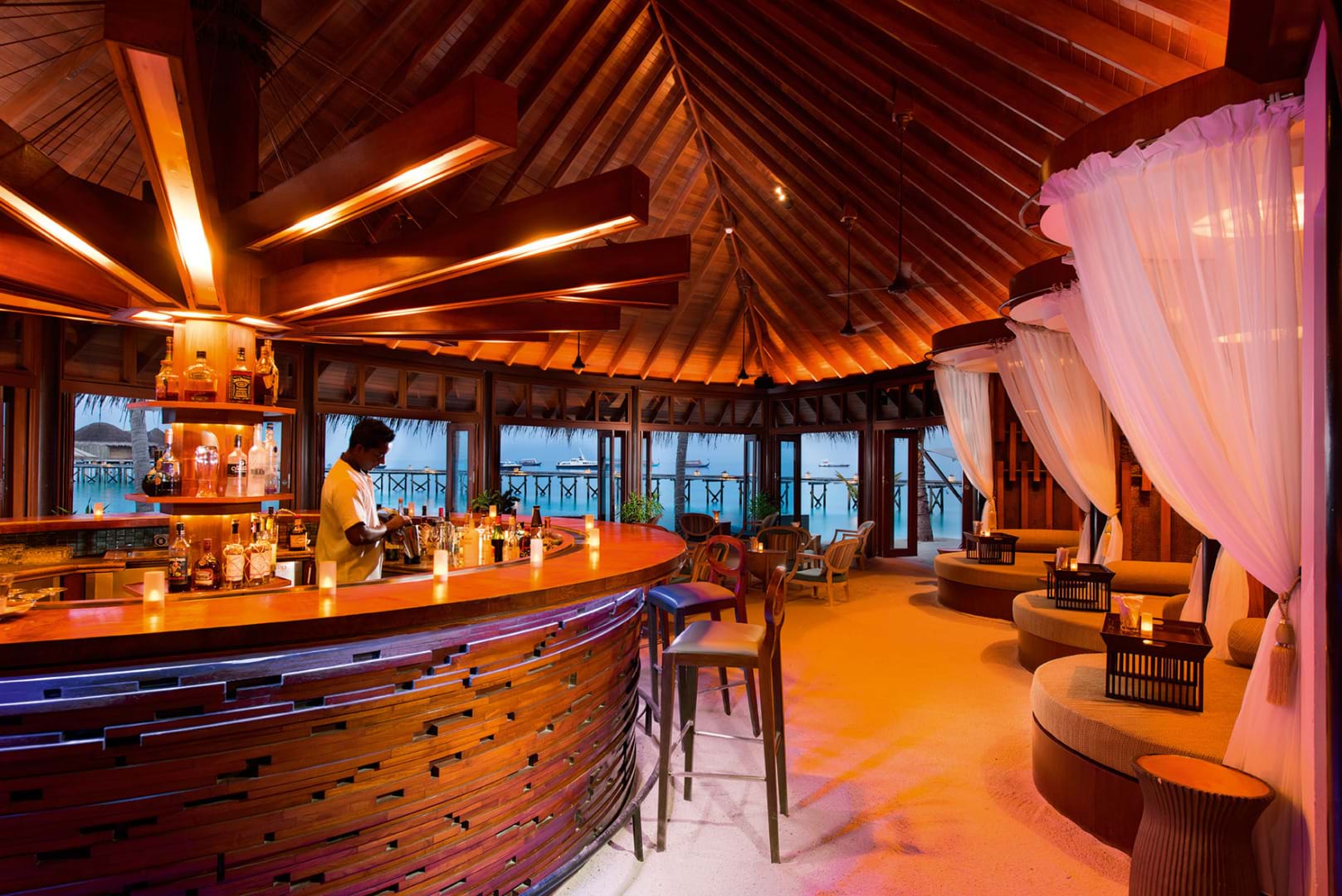 美食特色:亞洲、歐洲美食。餐廳介紹:供應晚餐,餐廳有72個座位,酒吧有52個座位,是一個東西方料理融合的地方,再用歐洲方式來表現的餐食文化。每周會有一晚休息。 JING餐廳和酒吧位于哈拉薇麗碼頭沿途的一處僻靜之所,供應完美調的亞洲和歐洲風味的菜品佳肴。臨岸海景位置營造出愜意愉悅的就餐氛圍,十分適合燭光晚餐。