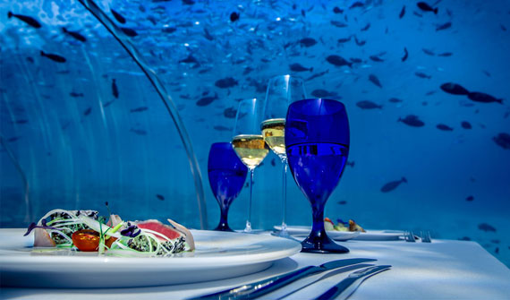 美食特色:現代菜系。餐廳介紹:5.8 水下餐廳提供世界一流的品鑒菜單,葡萄酒酒窖提供精品葡萄酒之選。食客可以通過旋轉樓梯到達,客容量最多 8 桌,餐廳位于環礁湖水下 5.8 米處(18 英尺)可以觀賞海洋生物在周邊珊瑚礁自由往來的美妙景象水族館餐廳位于水上,特供精品牛排,新鮮海鮮和多種亞洲菜系包含特色鐵板燒以及精品葡萄酒。