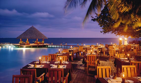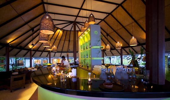 美食特色:各式飲品。酒吧介紹:Velaavani 在迪維希語中意為“淺水灣”。 開放式的水濱酒吧提供雞尾酒和點心,精心挑選的地理位置讓您可以觀賞瀉湖風光和環島珊瑚礁。 有時,您還能看到海龜和海豚在陽光下泛著閃爍波光的海水中嬉戲玩耍。