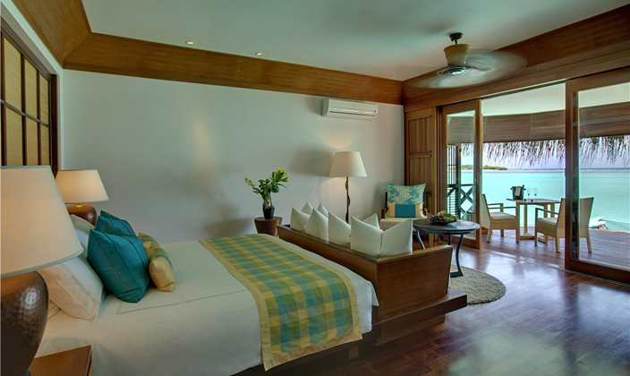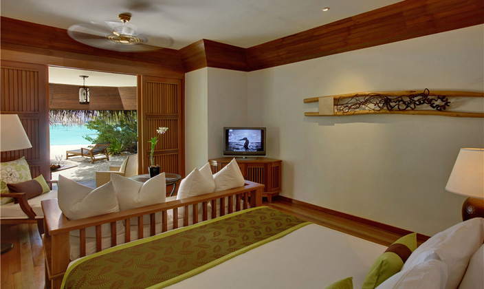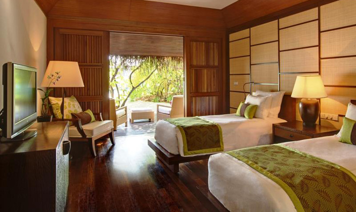 房間設(shè)計(jì)淳樸自然,提供有獨(dú)立的陽(yáng)臺(tái)和私人海濱。水上別墅和豪華別墅是座落在瀉湖之上,提供有獨(dú)立的梯子直接下水。所有的客房都可觀賞到印度洋美景,房間密度小。私密性高。