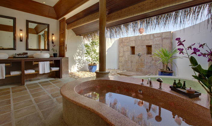 海灘別墅位于島嶼珊瑚沙灘的邊緣,私人的空間從海灘一直延伸到瀉湖。每間別墅都有自己私人的迷人海洋室外區(qū)域。手工制作的木,棕櫚,竹等天然材料的廣泛使用提供一個(gè)優(yōu)雅的室內(nèi)環(huán)境。