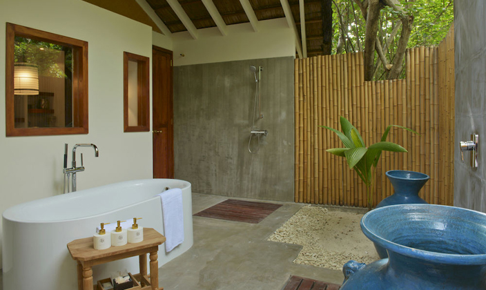 海灘別墅坐落在郁郁蔥蔥的天然植物之中,當你在戶外甲板上放松身心,呼吸著清新的空氣,也可以躺在私人戶外浴缸中感受海風吹拂著你的肌膚,享受馬爾代夫的和平與安靜。