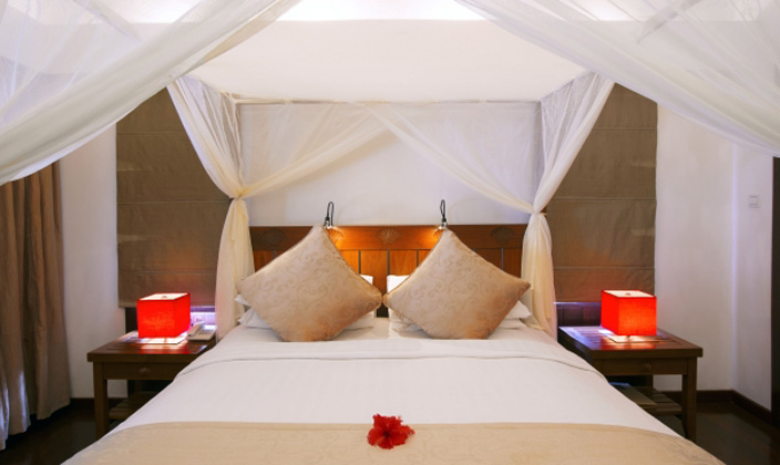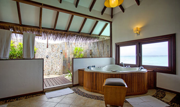 建于瀉湖之上的獨立位置,有四柱大床,大座位區和陽光浴甲板,室外淋浴設施,加大浴缸,可觀賞到海洋風景。