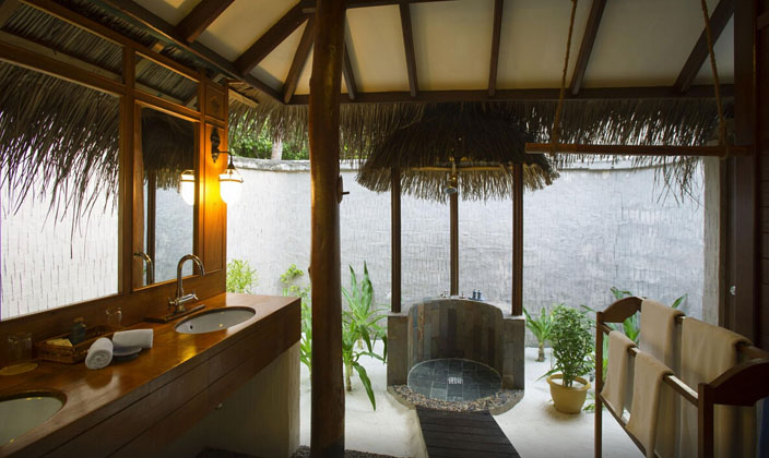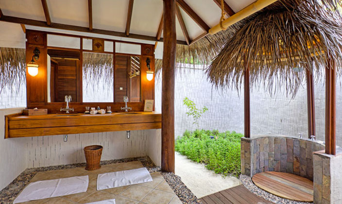 此房面對海灘和海洋而建,兩間海灘別墅與室外坐座區連接,設有浴盆及室外淋浴設施,私人室外走廊,馬爾代夫式的秋千,陽光休閑區。